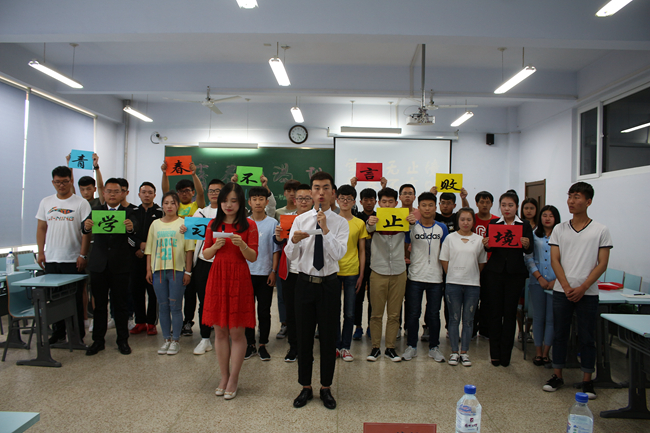 在成果展示中,孙崇林等6名同学用流利的英文表演的电视剧《西游记》和动画片《疯狂的小鸟》选段配音,惟妙惟肖的模仿和标准的英文发音让在座的各位仿佛身临其境。王鹏浩等10余名同学表演的英文短剧May the dream not come true,小短剧大道理,使同学知道不断丰富自己、不要虚度光阴、努力实现自我价值并增值的大道理。最后一个节目是刘禹初等10余名同学的英文诗歌朗诵,用他们的语言描绘宝贵的青春年华。学生们的表现和改变让老师们无比欣慰和喜悦。