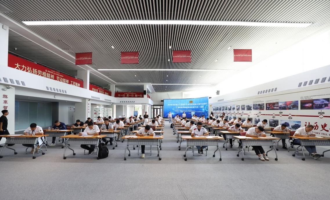 本次竞赛分理论考试与实操比赛两部分,来自省内汽车制造厂、汽车研究院等单位的选手们以冷静的头脑应对理论考试,以细致入微的手法在实操中排查故障,整场比赛紧张激烈而又秩序井然。实操比赛以纯电动汽车作为比赛用车,分为电动汽车技术、车身电气技术、线控底盘技术、智能网联技术四个竞赛项目。选手们围绕新能源汽车低压电源系统、高压控制系统、车身电气系统的低压供电不正常、高压供电不正常等五种常见的故障现象精准检测、快速分析并有效排除故障,展现了高超的专业技能与深厚的职业素养。