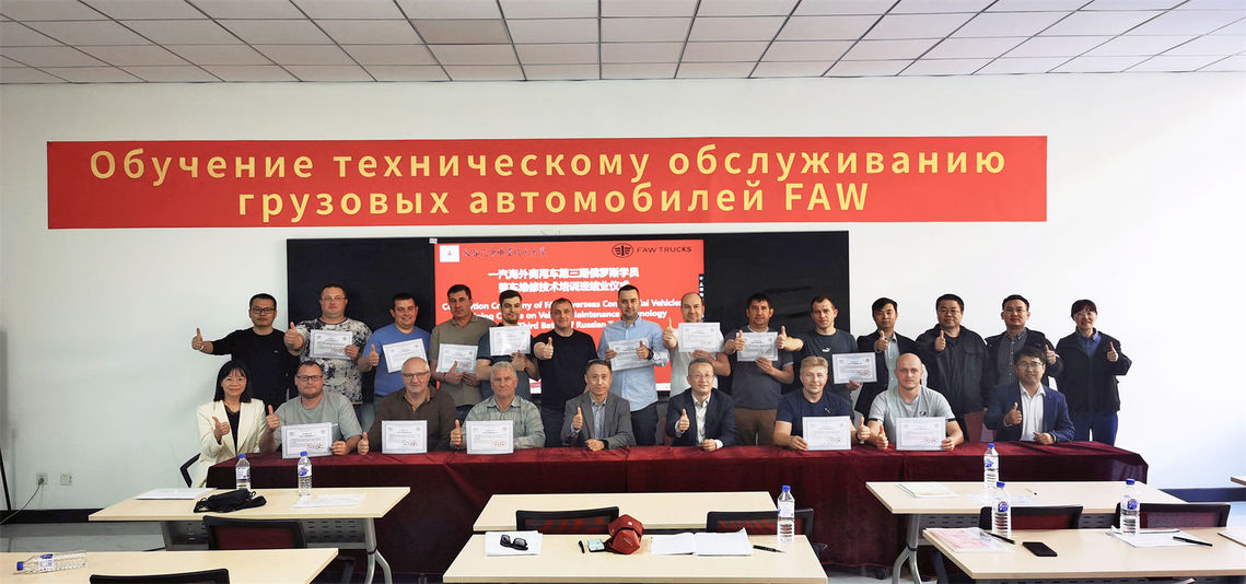 27日,第三期俄罗斯学员培训班学员们完成既定课程的学习顺利结业。我校副校长张勇忠和一汽解放国际公司服务部部长吕馨松共同为学员颁发了结业证书,热烈祝贺学员们在解放品牌汽车的专业领域能力更上一层楼,勉励学员归国后积极开展转训,提高俄罗斯市场解放品牌的汽车售后服务能力。
