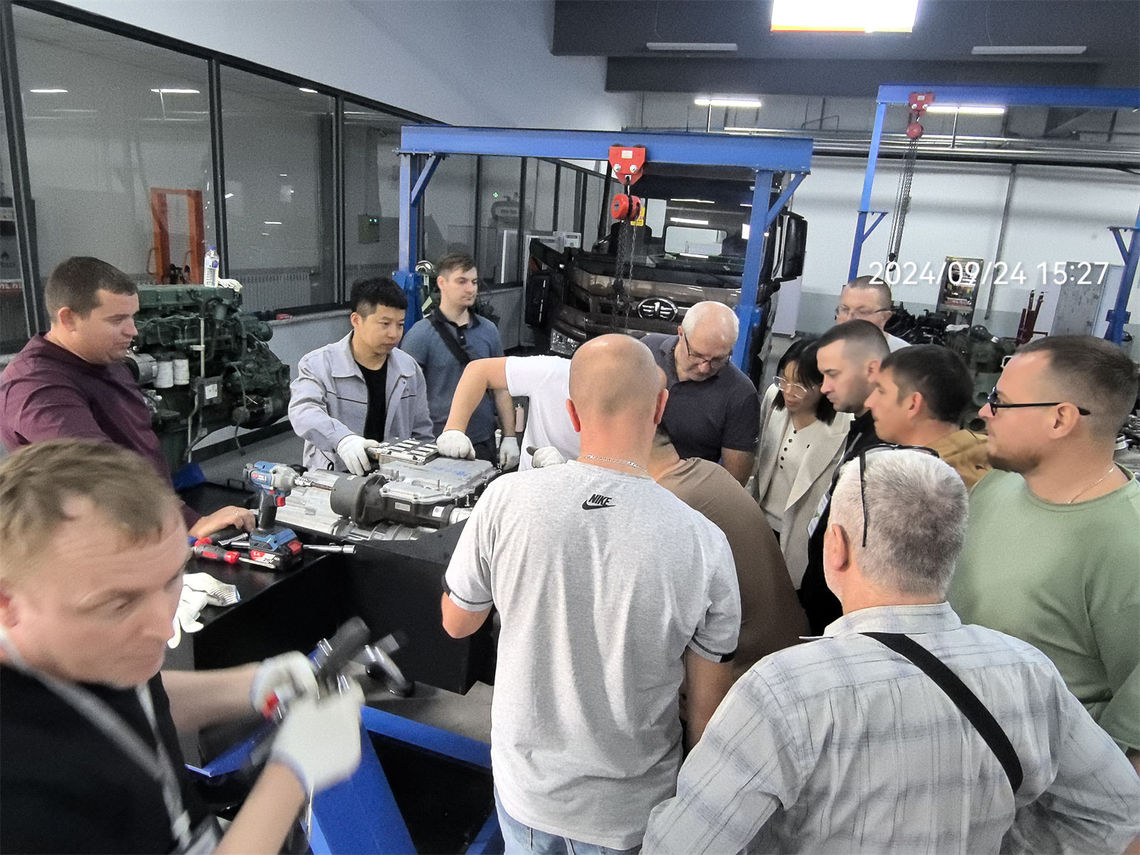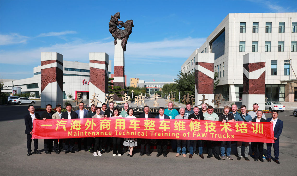 9月19日至27日,一汽海外第三期俄罗斯商用车整车维修技术培训班在我校中国汽车品牌海外培训基地顺利举办,来自俄罗斯市场的10家服务商,共14位维修服务专家来到基地参加解放J7整车维修技术培训。一汽解放国际公司党委副书记王俊华、服务部部长吕馨松、服务部服务技术室主任王裕泉、服务部服务技术主管梁志涛,我校副校长丁卓、培训与继续教育学院副院长高一强、汽车运用学院副院长田丰福共同出席开班仪式。开班仪式由国际交流学院院长刘凤珠主持。