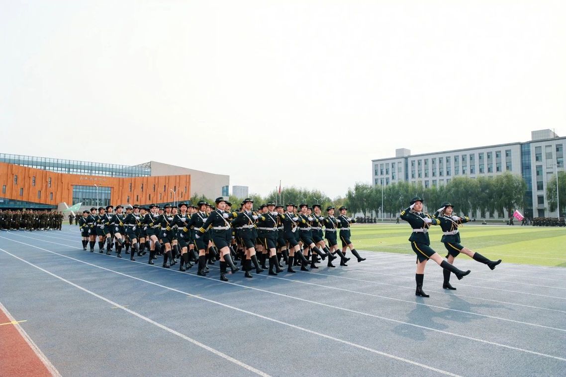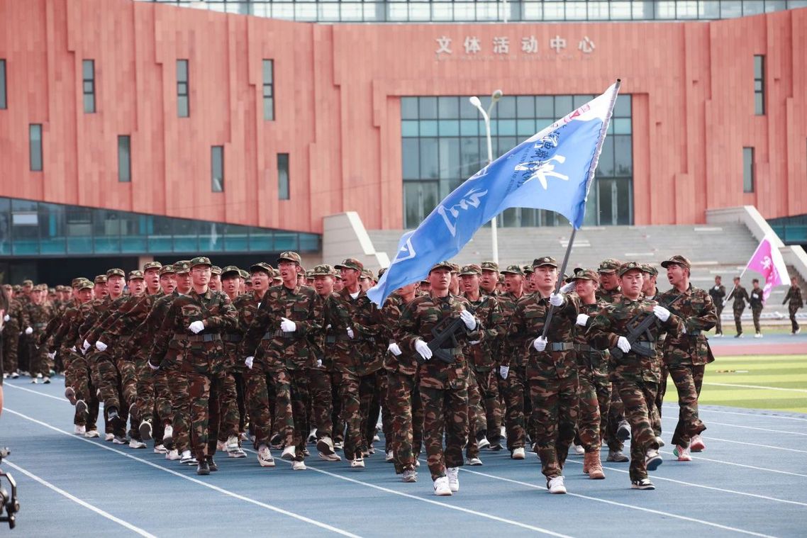 2024级学生以整齐划一的步伐和昂扬向上的精神风貌走过主席台,展示着开营以来的军训成果。