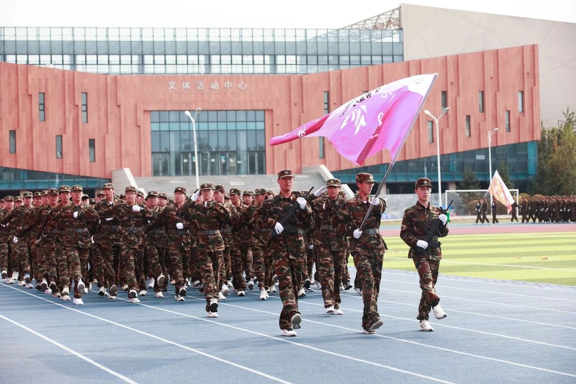 党委副书记、校长李春明在承训部队军训教官的陪同下检阅军训各方队。