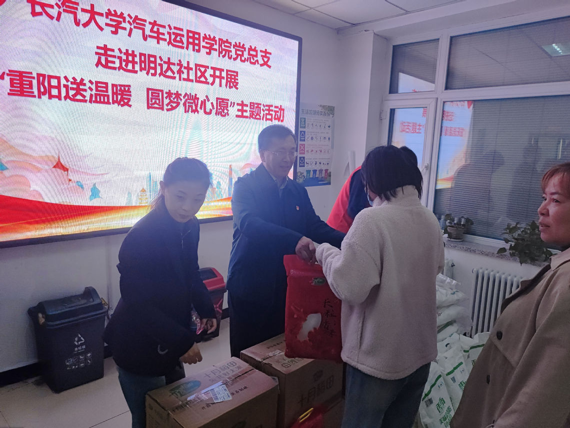 为常态化推进“我为群众办实事”系列活动走深走实,10月10日下午,在我校副校长张勇忠的带领下,汽车运用学院党总支前往汽开区富民街道明达社区开展“重阳送温暖 圆梦微心愿”主题活动,为困难居民送温暖。