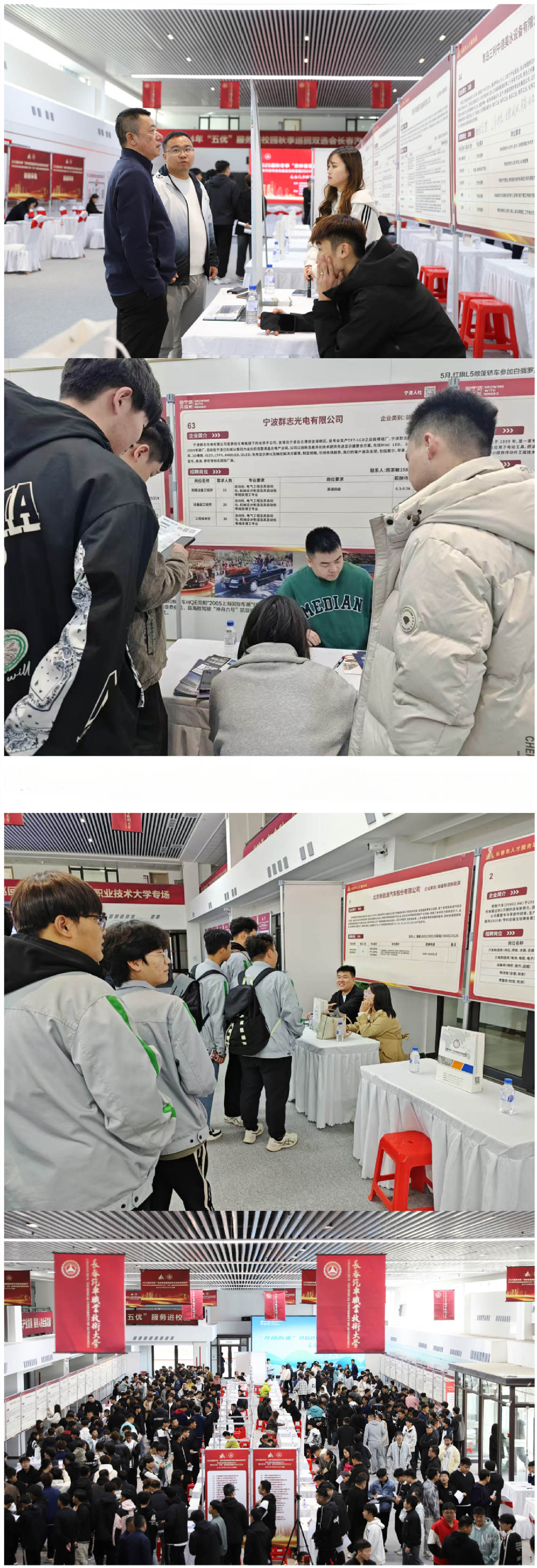 为深入学习贯彻党中央、国务院对高校毕业生就业工作的重要指示精神,全面落实吉林省普通高校毕业生就业洽谈月工作部署,10 月 15 日,2025届秋冬季“吉林省普通高校毕业生就业洽谈月”汽车行业毕业生就业洽谈会暨2024年“五优”服务进校园秋季长春汽车职业技术大学专场双选会在学校红旗汽车品牌服务中心成功举办。