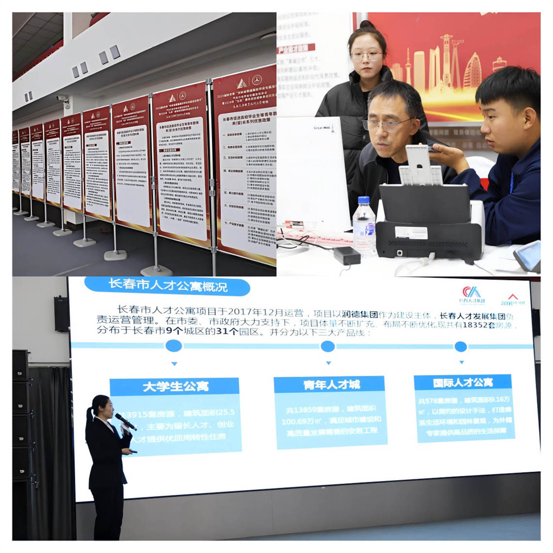 招聘会采用“线上+线下”结合的方式进行,线上“长春人才市场”“长春汽车职业技术大学”两个抖音号同步直播带岗,观看量达11196人次。线下学生可以直接携带简历与企业面对面沟通交流。长春市人才服务局同时设置咨询展位为同学们介绍长春市人才公寓使用办法,并同步派发依据人才新政全面升级的《长春市促进高校毕业生等青年群体来(留)长系列优惠政策》。