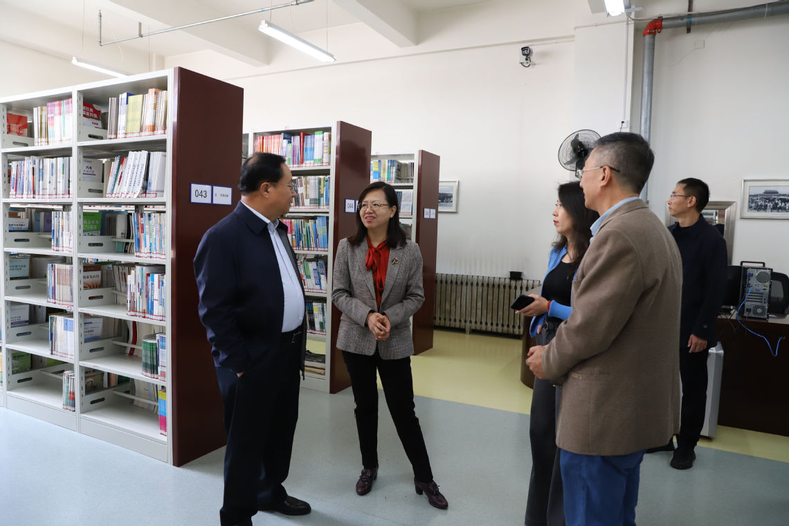 在图书馆参观过程中,刘向阳一行详细了解我校的馆藏图书、学生阅览室等情况。双方交流了职业院校图书馆建设的经验,表示在以后的发展建设中要互学互鉴,彼此分享好的经验做法。