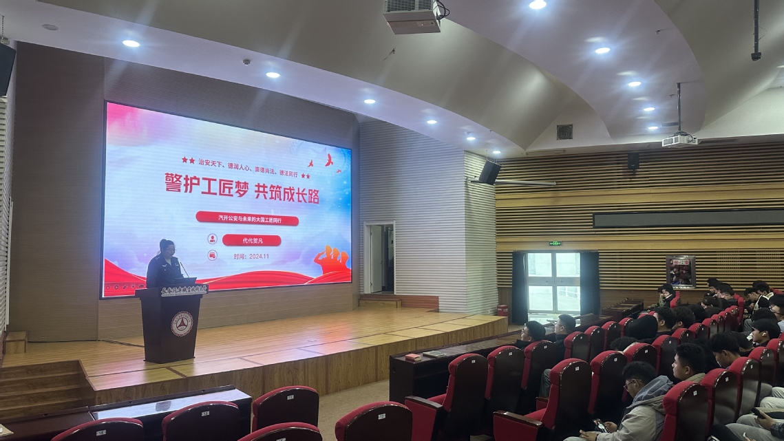在图书馆报告厅,代贺凡警官为汽车工程学院2024级学生开展校园安全专题讲座。她用生动鲜活的案例和通俗易懂的语言,为同学们详细讲解了校园欺凌的危害与应对、网络安全的防范要点、自我保护的实用技巧以及违法犯罪的严重后果。在互动环节中,同学们积极踊跃提问,与代贺凡警官展开了热烈的讨论,现场气氛十分活跃。