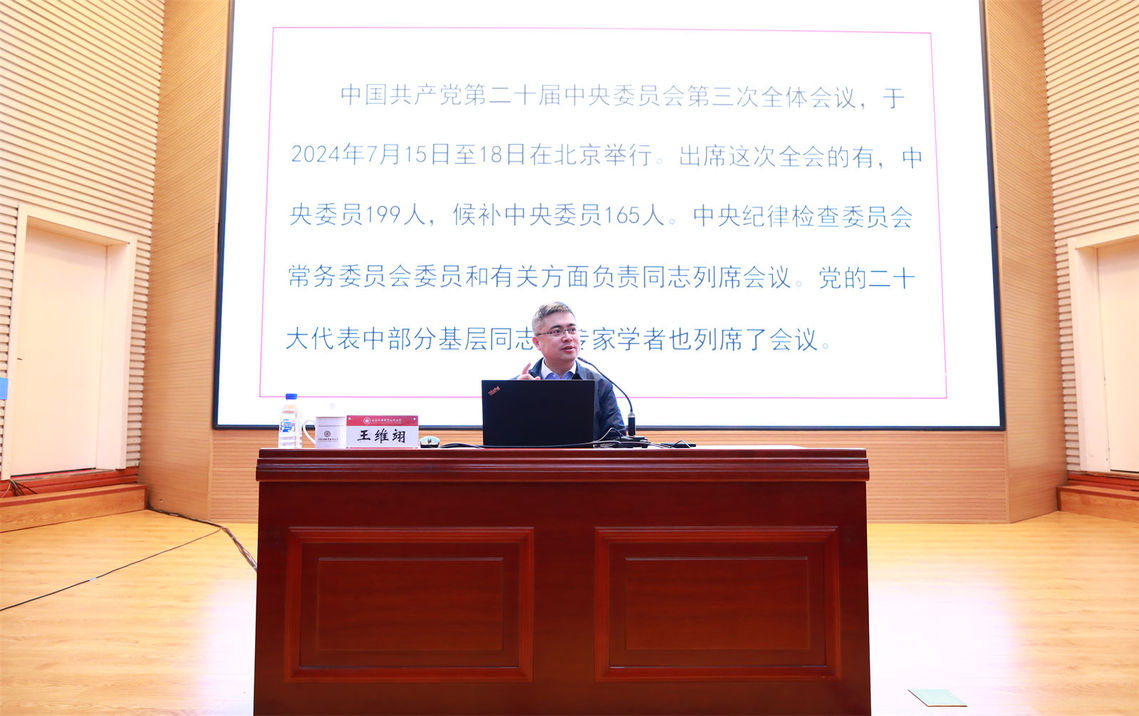 王维翊以《进一步全面深化改革 推进中国式现代化》为题,深入解读了全会精神,全面分析了党的十八大以来取得的历史性成就和发生的历史性变革,进一步阐释了全面深化改革的重大意义、指导思想、目标任务,系统讲解了重点改革领域举措。王维翊强调,全面深化改革要贯彻“六大原则”,围绕“十四大部署”,凝聚起改革攻坚的强大合力,善用新技术、新机制、新模式为改革赋能,激活发展新动能,奋力开创改革发展崭新局面。