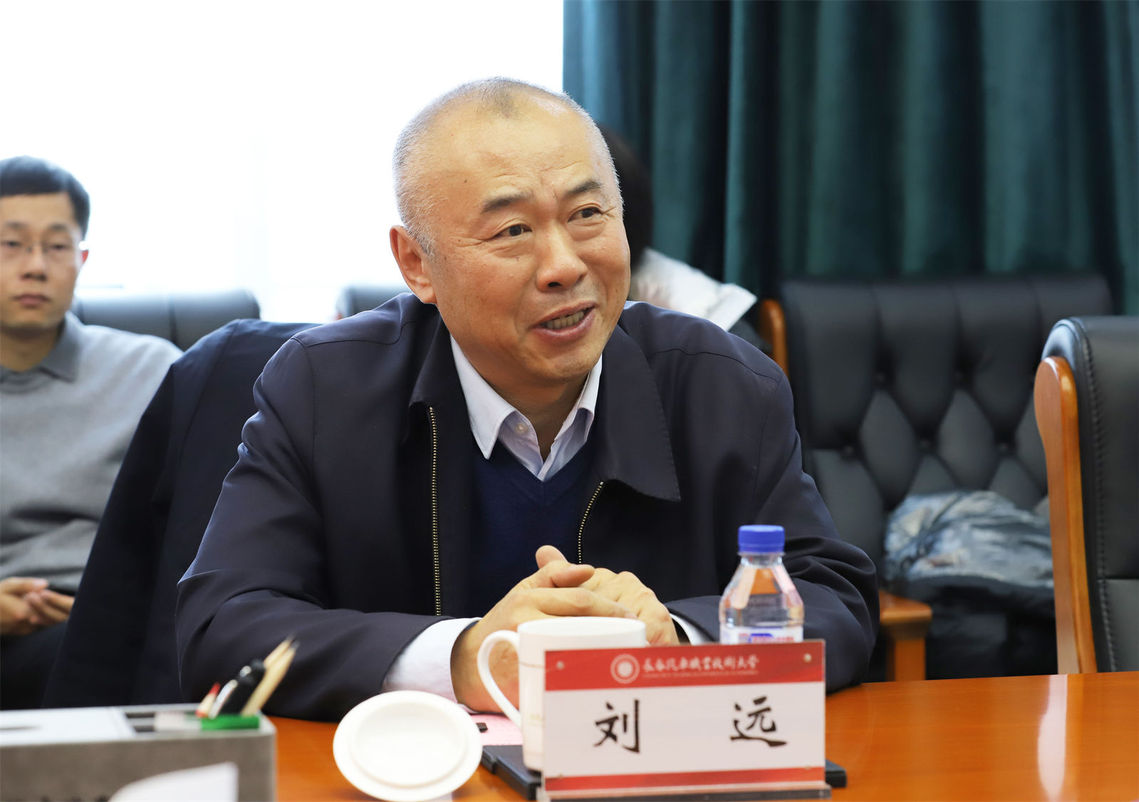李春明对刘远一行的到来表示欢迎,并围绕学校的发展历程、目标定位、办学规模、“双高”建设、职业本科建设等方面介绍了学校的发展情况。他表示,学校将全力支持联合培养基地的建设和发展,希望双方能够不断深化合作内容,拓宽合作领域,助力建设教育强省,共同以高等教育高质量发展支撑和推动教育强国战略。