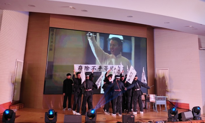 文艺汇演在情景剧《觉醒年代之青春有我》中拉开了序幕。同学们通过生动的表演,再现了那段激情燃烧的岁月,展现了青年学子在国家危难之际挺身而出的英勇形象。三句半《“一二·九”运动颂》颂扬了“一二·九”运动中学生们不屈不挠的斗争精神。朗诵《不朽的丰碑》深情回顾了“一二·九”运动的伟大历程,表达了对革命先烈的无限敬仰和深切怀念。街舞《大中国》以欢快的节奏和动感的舞姿,展现了当代大学生的活力与风采。乐队表演《新长征路上的摇滚》则将现场气氛推向了高潮,激昂的旋律和深情的演唱,让人仿佛置身于那个充满革命激情的年代。
