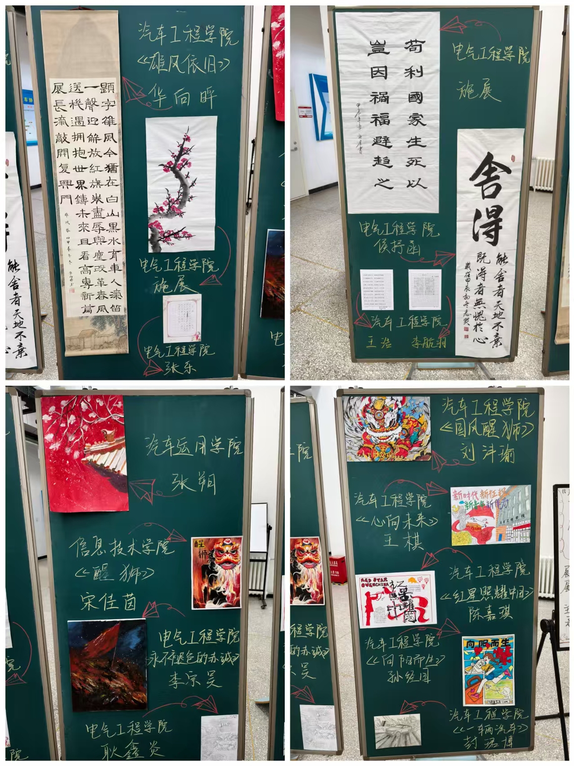 此次比赛的优秀作品在汽车工程学院一楼大厅进行展示,给同学们带来了一场视觉盛宴,同时也为校园精神文明建设助力添彩。