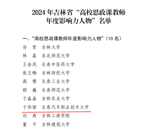 为深入学习贯彻习近平总书记在全国教育大会上的重要讲话精神和新时代学校思政课建设推进会精神,大力弘扬教育家精神,推动新时代高素质专业化教师队伍建设,全面落实“时代新人铸魂工程”工作部署,表彰和推广在思政课教学及研究领域成绩显著的教师,吉林省教育厅举办了2024年度“高校思政课教师年度影响力人物”推选展示活动。