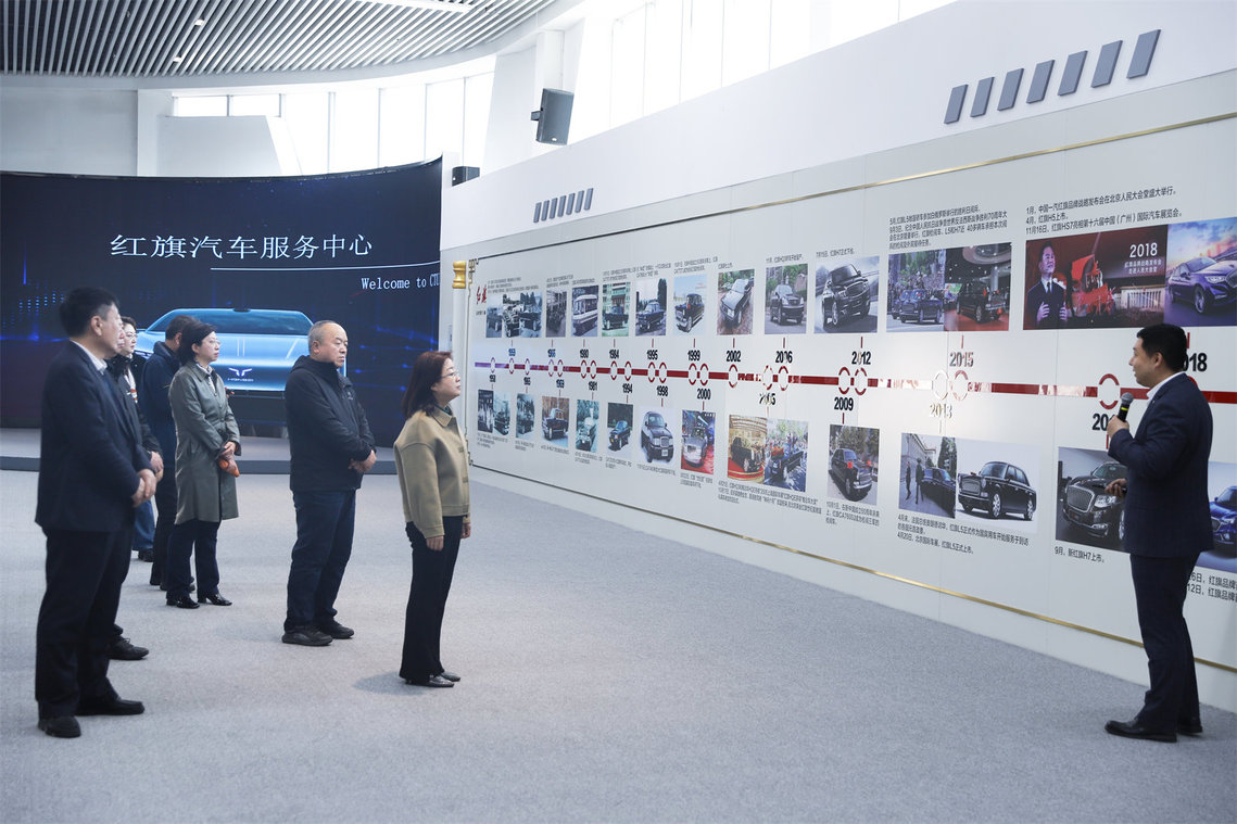 考察团一行先后实地踏查了学校红旗汽车品牌服务中心、融媒体中心、智能汽车工程研发服务中心、智能制造协同创新中心等地,详细了解学校实训基地建设情况及校企合作、产教融合等方面的办学成果。