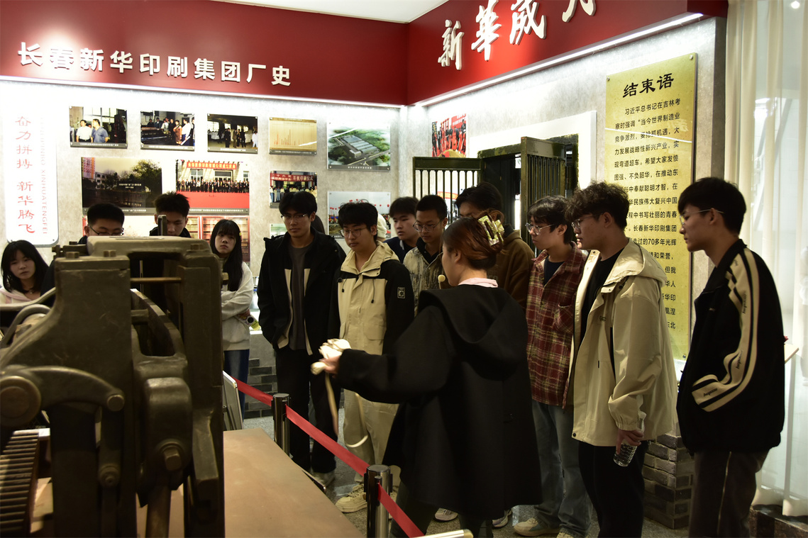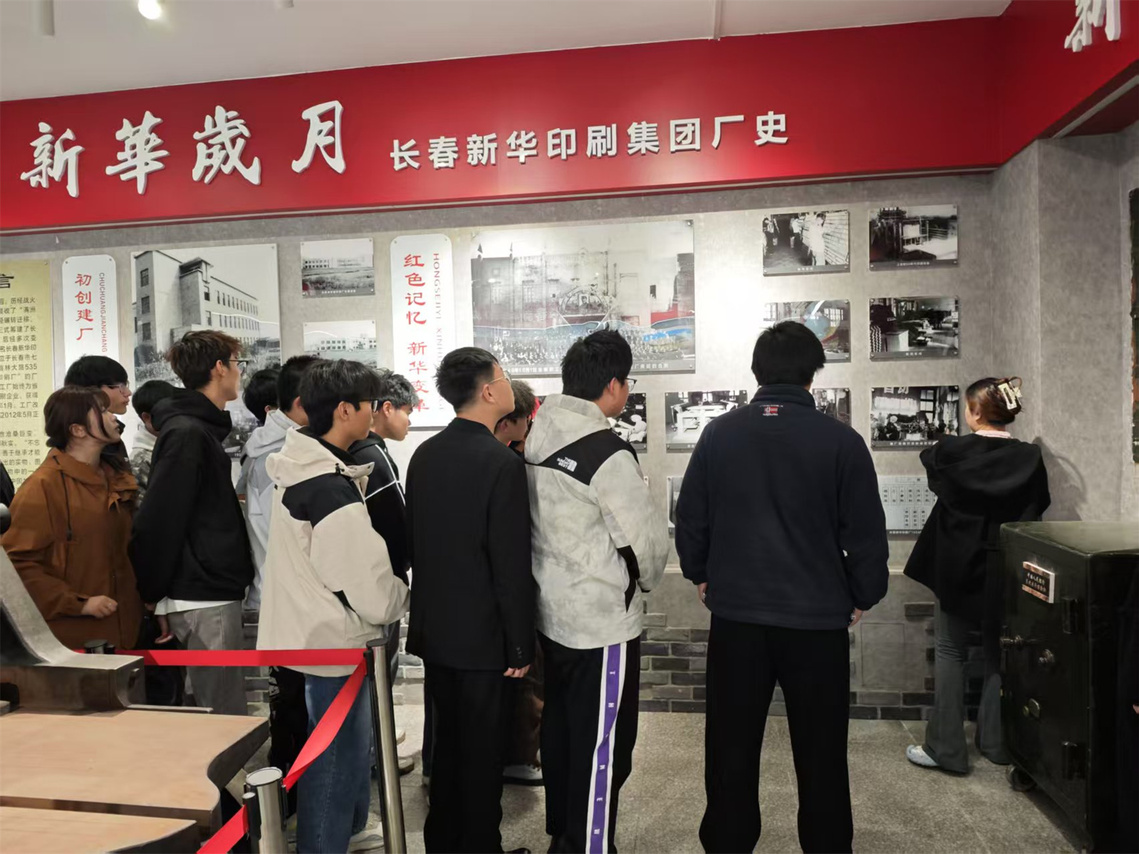 活动伊始,我校师生来到了长春新华印刷集团有限公司,走进了厂史陈列室,通过参观照片墙和历史物件,了解长春新华印刷厂的发展历程,感受这家老牌印刷企业的深厚底蕴。在制版中心、印刷车间及装订工艺区,同学们亲眼目睹了稿件入厂后制版、校对、发排以及大型印刷机高速运转的震撼场景,见证了图书的完整制作过程。