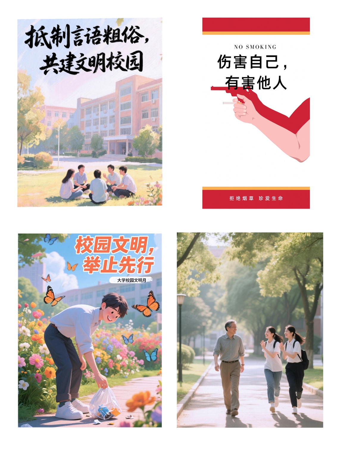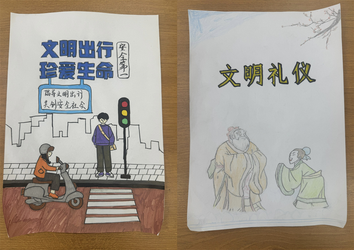 在电子板报制作活动中,同学们精心策划、积极创作,通过富有创意的设计,从多元视角深入解读文明校园的丰富内涵,充分展现出同学们的创新精神与艺术才能。