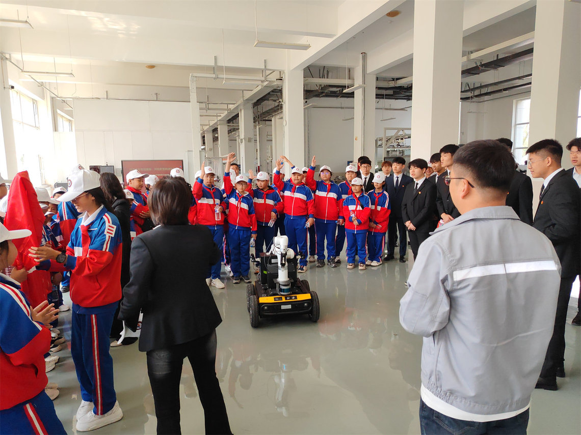 交通工程学院副院长田丰福对希望小学师生的到来表示热烈欢迎,并向师生们介绍了学校的办学特色、专业布局及本次参观活动的核心内容。他强调,此次研学是职普融通的生动实践,希望同学们通过实地探访,在心中种下“技能报国”的种子。