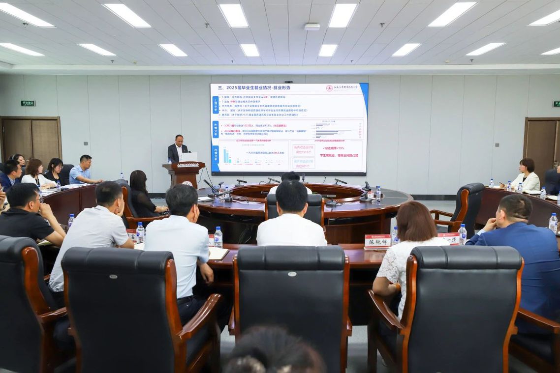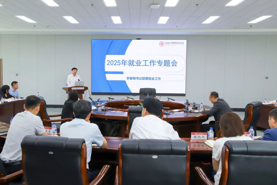为深入贯彻落实党中央、国务院关于高校毕业生就业工作的决策部署,全面落实教育部和省委、省政府关于高校毕业生高质量就业的工作要求,全面总结 2024年就业工作经验,部署 2025年就业重点任务,近日,学校召开2025年就业工作专题会。党委书记、校长李春明,各学院院长、副院长、党总支(支部)副书记,全体2025届及2026届毕业班辅导员,学生处(大学生就业指导中心)全体人员参加会议。会议由党委副书记赵娜主持。