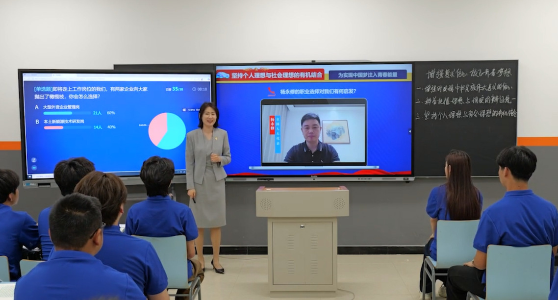 思想政治理论教研部以职教政策学习为先导,以思政课程教学课件修订为着力点,以教学能力大赛为引领,创新“多元驱动”教学模式,推动线上线下混合式教学。三位教师开展本专科思政课程公开课展示,将思政教育与职教特色深度融合,实现了思政铸魂与课程改革的有机结合,为培养时代新人奠定了坚实的思想根基。