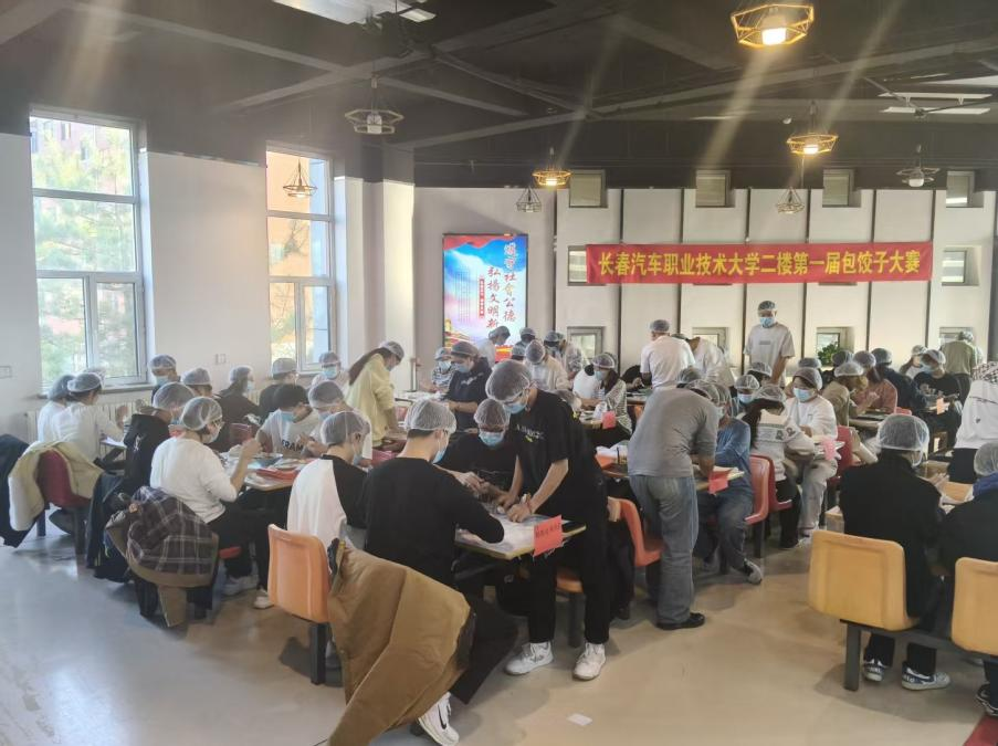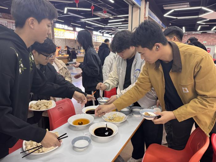同学们围在操作台前,在动手实践中体验制作传统美食的乐趣。有的手法娴熟捏出月牙形饺子,有的创意满满地包出“福袋饺”“元宝饺”,有人为自己包的“奇形怪状”饺子拍照打卡,有人和好友比赛谁包的饺子又快又好看,现场欢声笑语不断,原本陌生的同学因一场“饺子之约”熟络起来,在协作中增进了解、收获友谊。