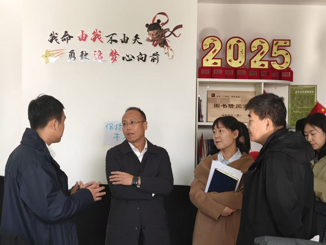 调研期间,张春雨一行实地走访了长春中医药大学杏林“一站式”学生社区综合服务中心、甘草社区及远志社区,并就“一站式”学生社区建设、“第二课堂成绩单”制度制定、资助工作、心理健康工作、辅导员队伍建设工作等进行调研座谈。