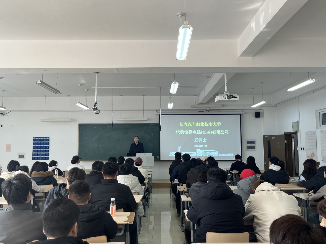 座谈会后,一汽物流江苏公司在学院举办专场实习招聘宣讲会,吸引了众多学生参与。一汽物流招聘代表详细介绍了企业的业务布局、人才需求以及为实习生提供的系统岗前培训和职业发展通道等方面的情况。活动现场气氛热烈,学生们就实习岗位、职业发展路径、企业培训体系等与企业代表进行了深入交流。