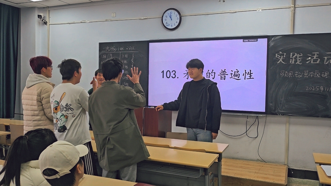 本次主题实践活动依托马克思主义基本原理课程实体课堂,以“思维导图绘制”“哲学猜词游戏”和“视频作品展播”为主要形式,引导2024级本科生在实践活动中激发学习兴趣、提升思辨能力,将课堂所学的哲学知识应用到日常学习与生活之中,提升认识、分析和解决问题的综合素养。