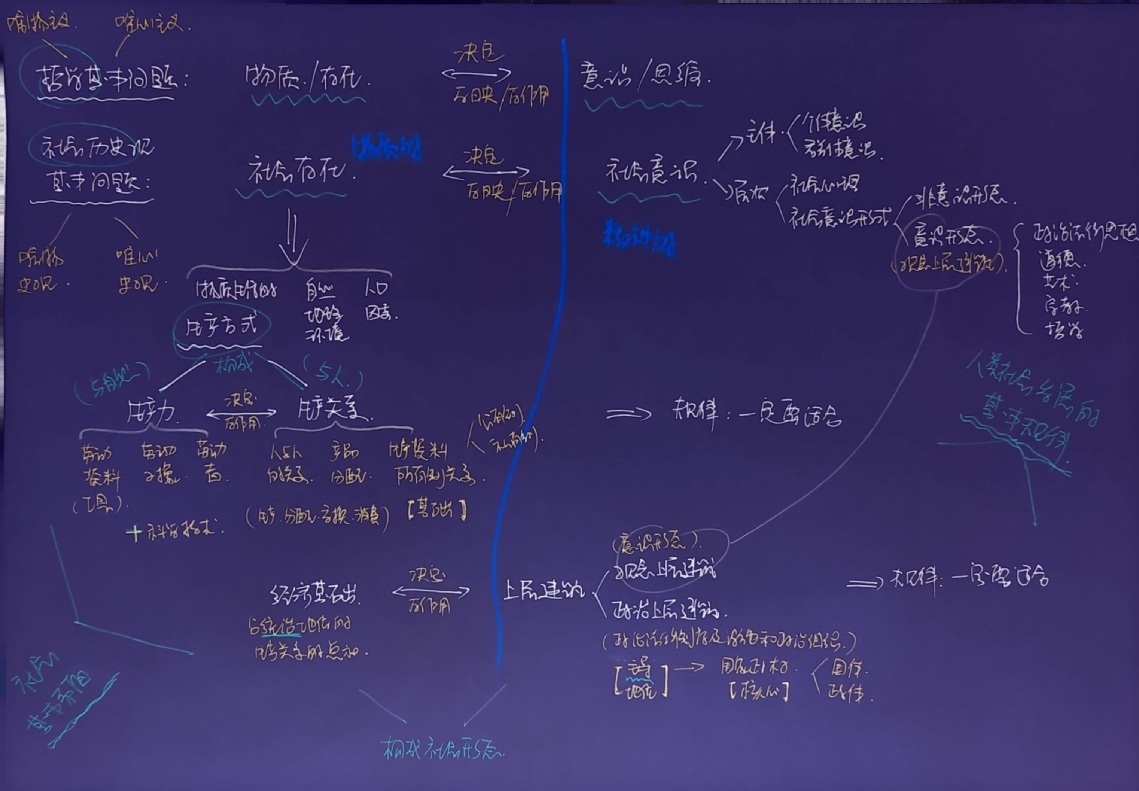 在“马克思主义哲学思维导图共绘”环节中,师生从辩证唯物主义、唯物辩证法,到科学实践观与认识论,再到唯物史观共同梳理知识框架,帮助学生精准把握马克思主义哲学的逻辑体系,成功搭建系统认知框架,在头脑中构建立体知识图谱。