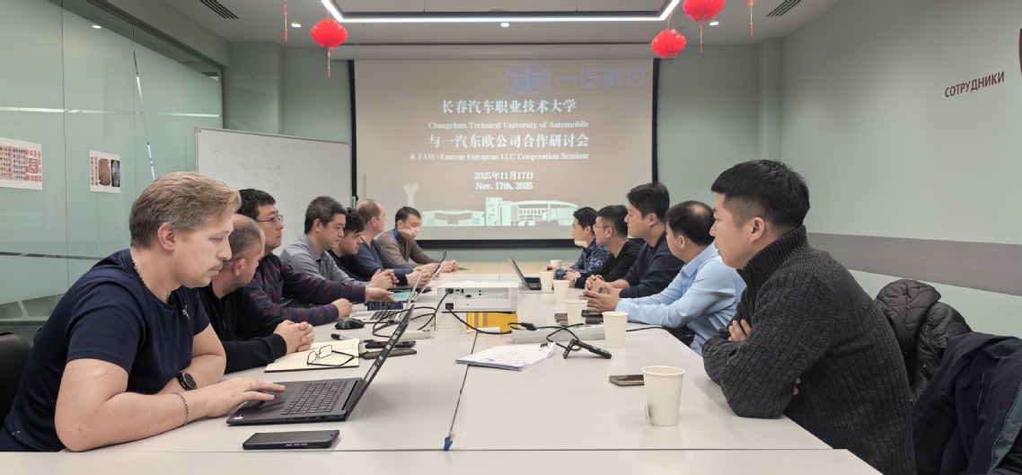 11月17日,培训团在莫斯科与一汽解放国际东欧公司服务部部长赵帅开展工作会谈。双方就俄罗斯市场汽车维修初、中、高三级技能鉴定标准达成共识,并交流了国内成熟的培训经验,为后续培训标准化落地奠定基础。同日,“中国汽车品牌海外人才培训基地(俄罗斯)”挂牌仪式顺利举行,标志着中俄汽车技术服务合作迈入规范化、长效化、系统化新阶段,进一步巩固了一汽解放国际公司在俄罗斯市场的技术服务体系。