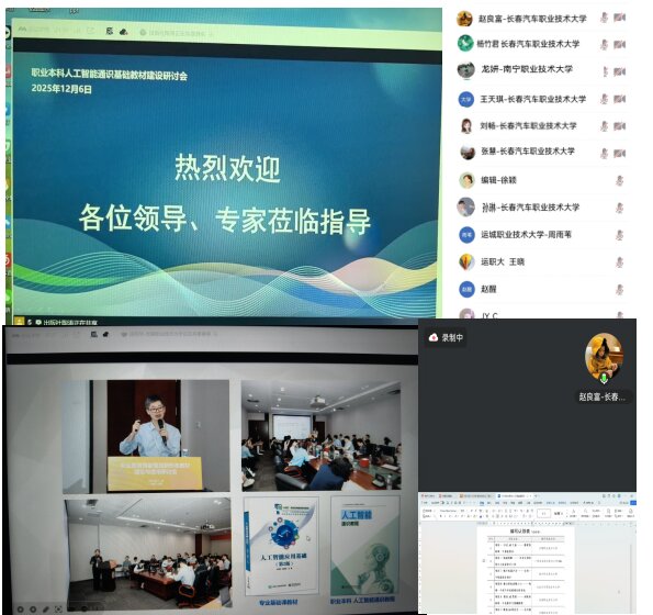 此次研讨会的成功召开,是我校深化“汽车+人工智能”专业建设、对接职业本科优质教学资源、推进产教融合的重要举措,为多校协同开展教材建设搭建了高效合作平台。下一步,学校将按照会议确定的任务分工,组织骨干教师全力参与教材特色内容编写,为职业本科人工智能通识教育提质增效注入强劲动力,为培养更多适应人工智能时代需求的复合型高端技能人才提供坚实支撑。