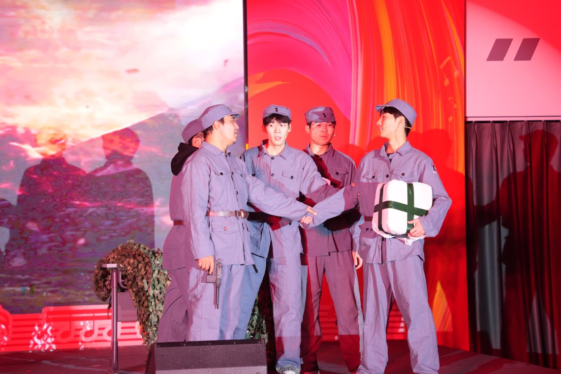 文艺汇演在情景剧《觉醒年代——纪念一二·九运动》中拉开帷幕。同学们以饱满的热情和精湛的表演,生动再现了九十年前热血青年为国呐喊、救亡图存的历史场景,展现了青年学子心系民族命运的担当。歌曲《青春之歌》以昂扬的旋律唱响了青春的壮志与激情。三句半《语出历史》则以诙谐而深刻的形式,回望历史,启迪当下,赢得了阵阵掌声。