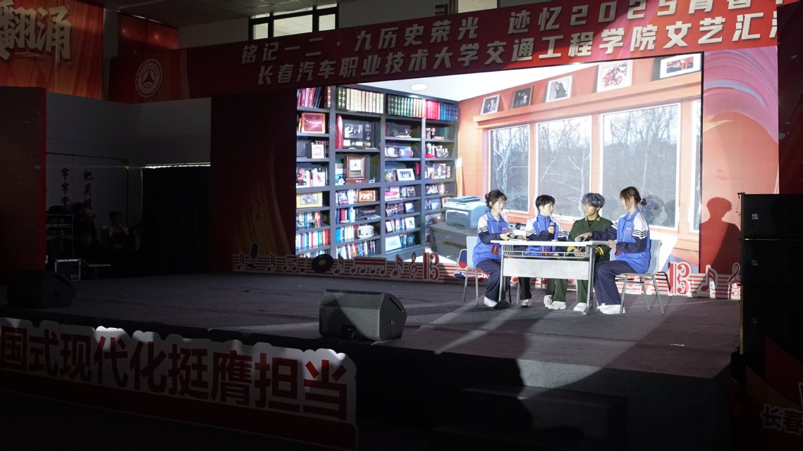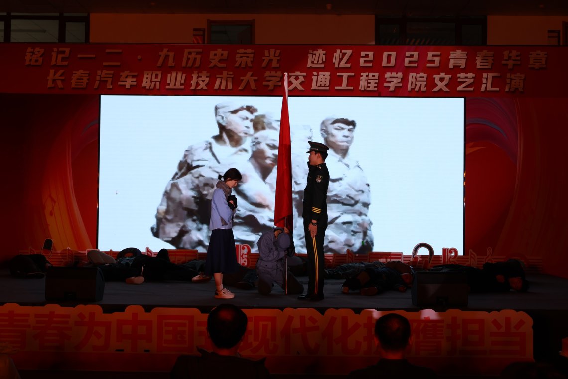 文艺汇演在辅导员戚常伟与学院学生会成员共同带来的大合唱《我爱你中国》中达到最高潮。全体师生起立高唱,激昂嘹亮的歌声响彻全场,这不仅是对祖国最深情的告白,更是新时代长汽大学学子许下的“请党放心、强国有我”的青春誓言。