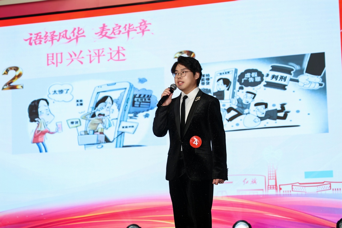 本次大赛紧紧围绕赓续红色精神与优秀文化传承,设置“情景演绎”“栏目主持”“即兴评述”三大环节,经过院赛、海选赛、校赛训练营等激烈角逐,共有10名优秀选手进入总决赛,展开了一场语言艺术与综合素养的巅峰对决。