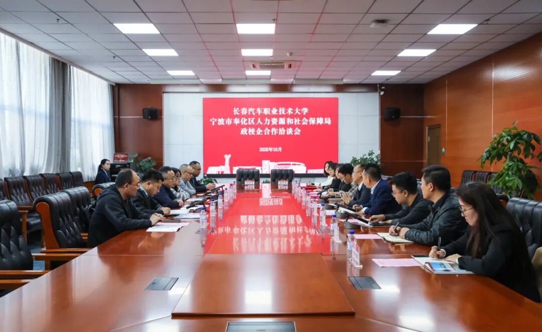 近日,长春汽车职业技术大学与宁波市奉化区人力资源和社会保障局政校企合作洽谈会在我校顺利举行。宁波市奉化区人力资源和社会保障局党委副书记、副局长江南,人才开发科科长颜思思,奉化区人才服务中心主任周仁杰、市场招聘部部长方斌,宁波索诺工业自控设备有限公司主任孔明,宁波市奉化区汽车零部件行业协会秘书长林荣,我校学生处处长张春雨、就业工作负责人翟雨来、机械工程学院党总支副书记杨凤湖、汽车工程学院学生工作负责人刘通,就业指导科科长柯慧及相关工作人员参加会议。张春雨对宁波市奉化区政企协领导的莅临表示热烈欢迎。他详细介绍了学校的办学定位、人才培养模式及核心办学特色,重点阐述了近年来学校在推进政校企合作、产学研深度融合等方面的实践与成效。张春雨表示,学校始终致力于高校、政府、企业三方合作交流,积极探索多层次、多形式、多领域的协同合作模式,不断深化和丰富人才培养与技能提升领域的合作内涵,有效推动了校地、校企合作协同发展。未来,我校将持续发力,构建全面、深入、富有内涵的新时代政校企合作长效机制,为区域产业发展输送更多高素质技术技能人才,为学生成长成才搭建更广阔的平台。江南对我校鲜明的办学特色、显著的人才培养